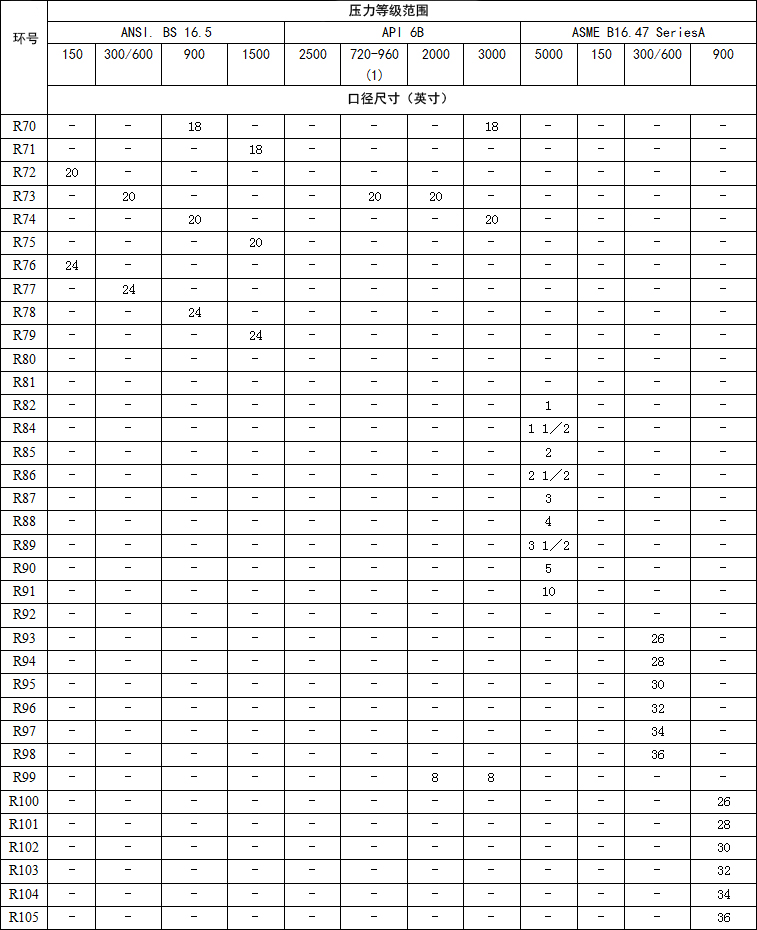 R型墊片的制造符合API 6A、6B和ASME b16.20適合API ASME/ANSI B16.5法蘭。在橢圓形和八角形配置,這兩種類型是可互換的現代八角型槽法蘭。